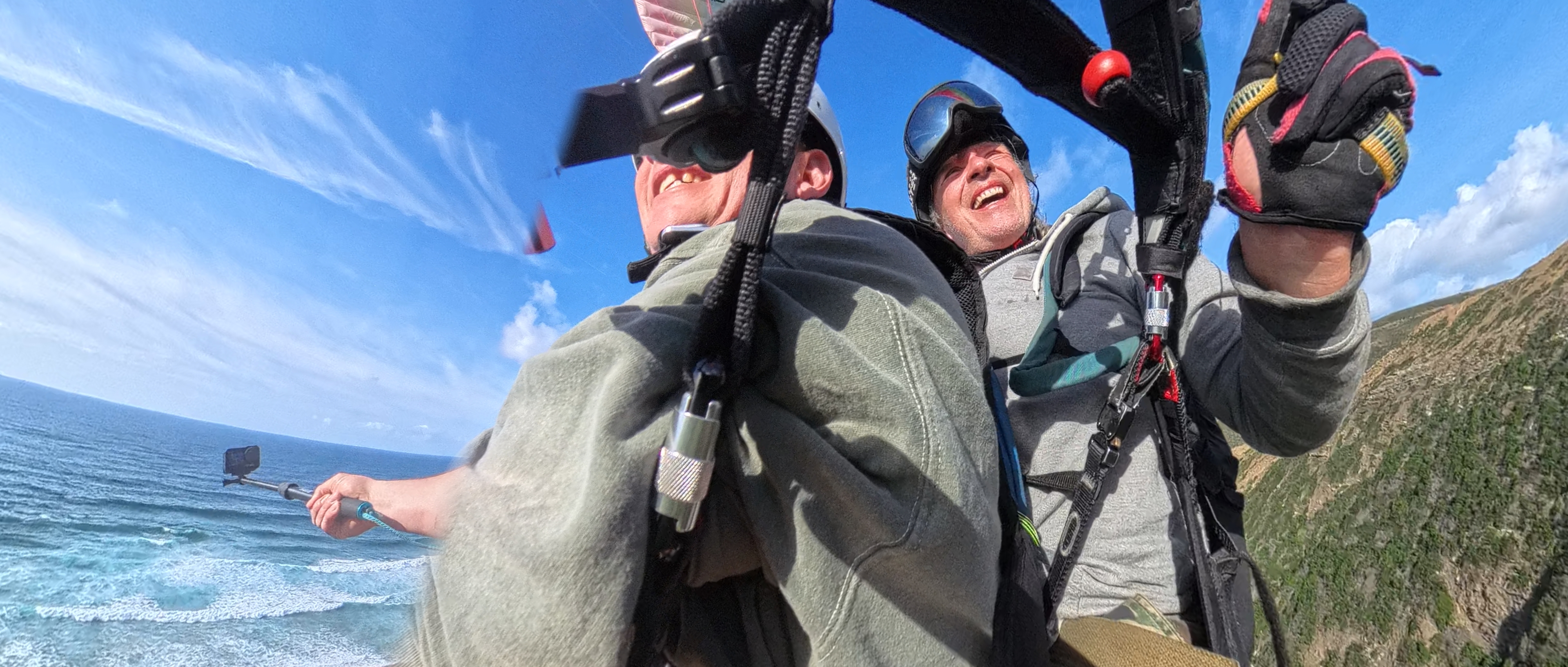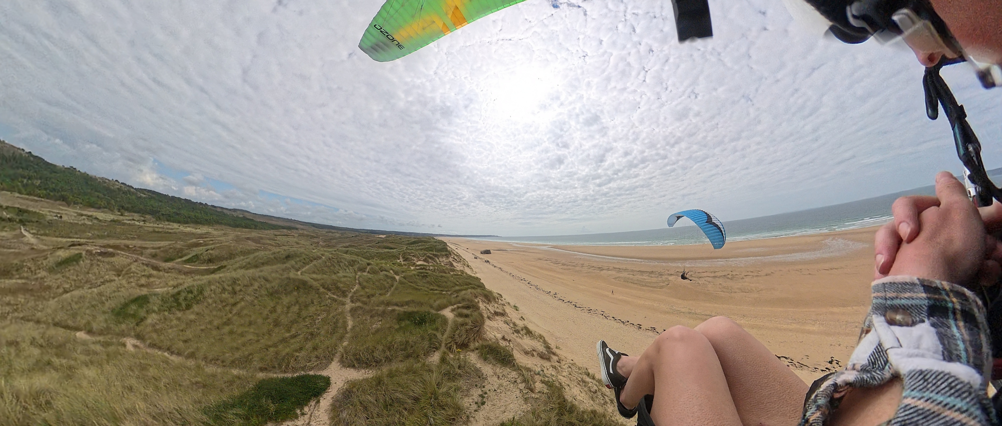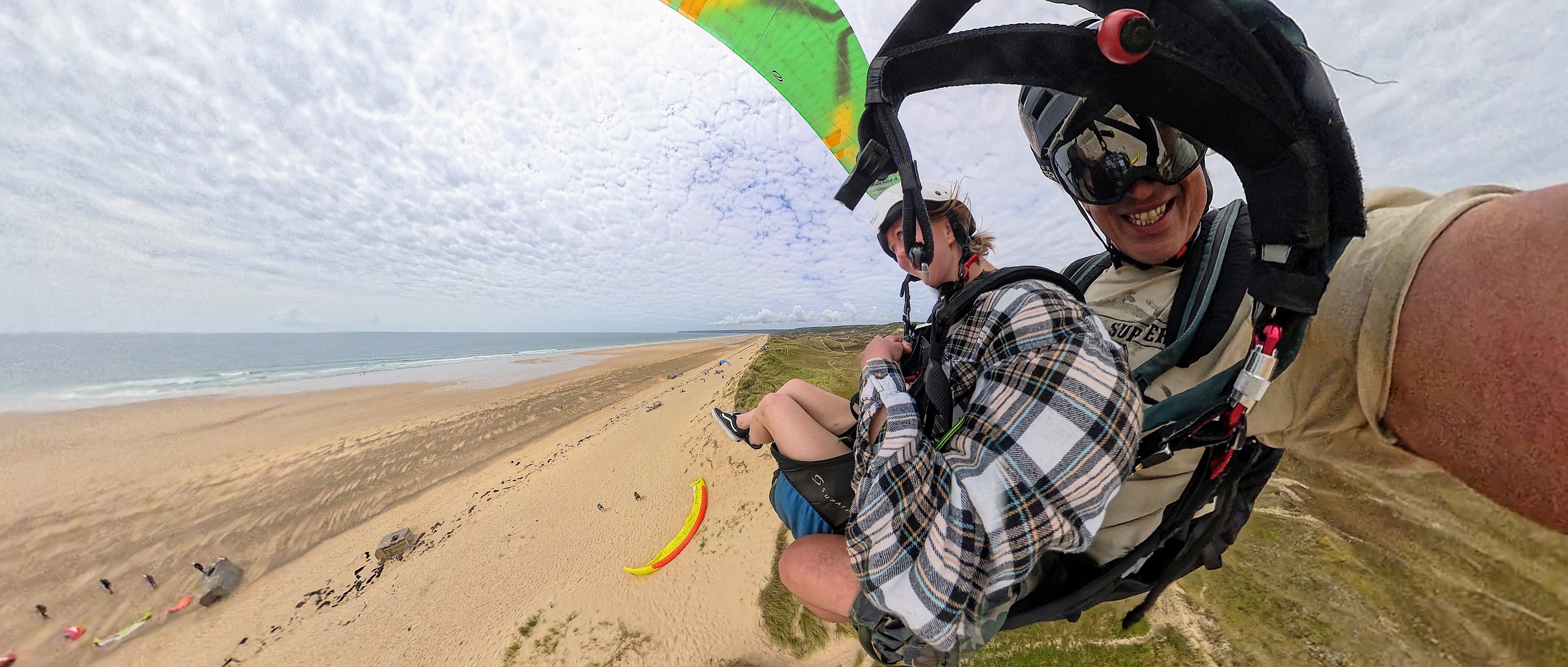Der Startplatz am Meer ist ein Klippenstart oder an der Sanddüne. Bei starken Bedingungen auch direkt vom Strand. Ein Tandemflug- Gleitschirmflug kann hier sicher und einfach gestartet werden und ist für jeden geeignet. Teilweise benötigen wir Starthelfer, die uns zur Hand gehen. Während Deines Gleitschirmfluges kannst Du die tollen Farben der Landschaft, den Atlantik und teilweise den ein- oder anderen Surfer bewundern.